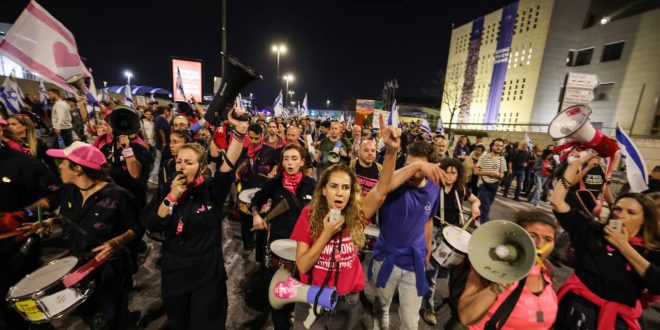 وكُتب على إحدى اللافتات: “أعيدوا الجميع إلى بيوتهم الآن. بدون إعادة الرهائن، لن يكون لإسرائيل أي مبرر للوجود”.