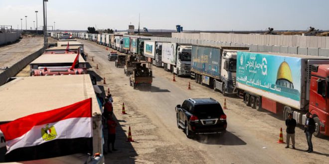 ويذكر أن المساعدات الإنسانية عالقة في مصر منذ أيام مع غرق غزة في أزمة إنسانية متفاقمة، مع النفاذ السريع للغذاء والماء والوقود والإمدادات الطبية وكل ذلك في ظل قصف جوي متواصل.