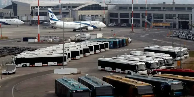 "هآرتس"، الطائرة أثناء هبوطها في مطار بن غوريون بتل أبيب.