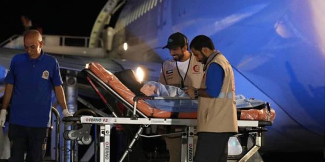 وذكرت الخارجية الإماراتية في بيان: “حطت الطائرة القادمة من مطار العريش في جمهورية مصر العربية، في مطار أبوظبي، والتي تحمل على متنها الأطفال والذين هم في أمس الحاجة للمساعدة الطبية ممن يعانون من إصابات وحروق شديدة، ومرضى سرطان يحتاجون إلى علاج حثيث”.