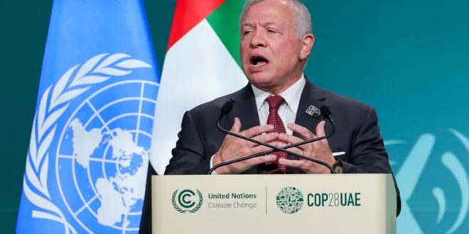 قال العاهل الأردني، الملك عبدالله الثاني، إن التهديدات المناخية تزيد من فظاعة مآسي الحرب على قطاع غ-زة، وذلك في الكلمة التي ألقاها في فعاليات اليوم الثاني بمؤتمر الأطراف في اتفاقية الأمم المتحدة الإطارية بشأن تغير المناخ “COP28” في دبي.