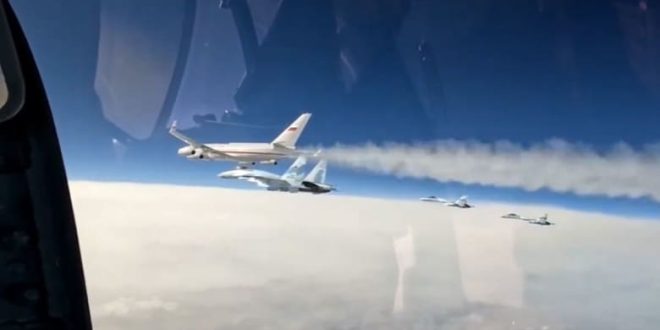 تداول نشطاء على مواقع التواصل الاجتماعي مقاطع فيديو لمرافقة مقاتلات روسية من طراز “سو-35” للطائرة التي كانت تقل الرئيس الروسي، فلاديمير بوتين قبيل هبوطه في الإمارات.