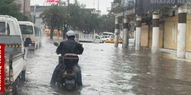شهدت العاصمة بغداد، صباح اليوم الأربعاء، شللاً في حركة المرور وغرق العديد من الشوارع الحيوية إثر موجة أمطار غزيرة، ما تسبب باحتجاز آلاف الموظفين في الطرقات و تعذر وصولهم إلى مؤسساتهم الحكومية.
