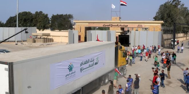 وقالت سلطات الحدود المصرية إن 20 شاحنة مساعدات تمكنت من العبور عبر معبر رفح من مصر إلى غزة، السبت، سلّمت الغذاء والماء والأدوية والإمدادات الطبية ولكن بدون الوقود.