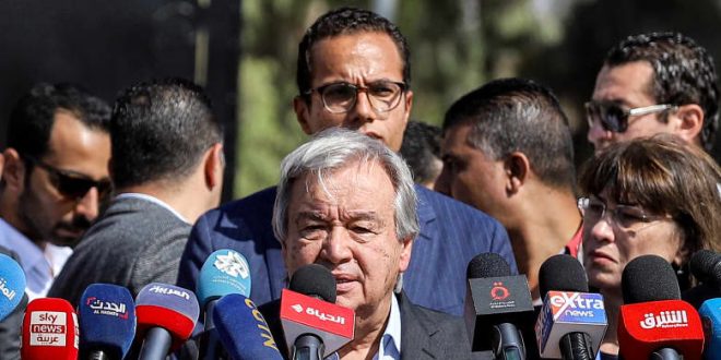 وقال غوتيريش، في كلمته أمام مجلس الأمن الدولي في نيويورك، إنه “يشعر بقلق عميق إزاء الانتهاكات الواضحة للقانون الإنساني الدولي التي نشهدها في غزة”.