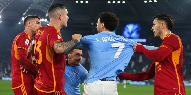 فوضى في المدرجات واشتباكات بالأيدي بين اللاعبين خلال مباراة روما ولاتسيو