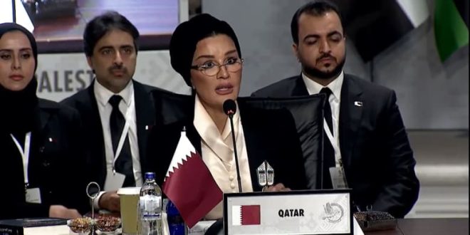 وأضافت: “انطلاقاً من إيماننا بأن إعادة بناء التعليم تعني إعادة بناء الأمل بالمستقبل، سنواصل دأبنا على دعم قطاع التعليم في غ-ز ة من خلال مؤسسة التعليم فوق الجميع بتشجيعٍ ودعمٍ ماليٍّ من دولةٍ قطر.. قطر التي رفضت أن تكون على الهامش وتبوأت مكانة في صنع التاريخ، ستحفظ لها صورة مشرقة في ذاكرة الأجيال العربية والقطرية في أنها من الدول صغيرة الحجم مساحة وسكاناً، ولكنها الكبيرة برجالها وأخلاقها وطموحاتها ومواقفها وأدوارها.. يتعيّنُ على دولِنا الضغطُ من أجلِ وقْفِ الحرب وتزويدِ أهل غ-ز ة بالحاجاتِ الضروريةِ للحياة. أنَّ كلَّ ما نفعلُهُ من أجلِ أشقائنا الفلسطينيين في غزّةَ والضِفّةِ الغربية لَهوَ أقلُّ ممّا يستحقّون، وهم الذين يمثّلونَ، في هذه اللحظةِ من التاريخ، كرامةَ هذه الأمة”.