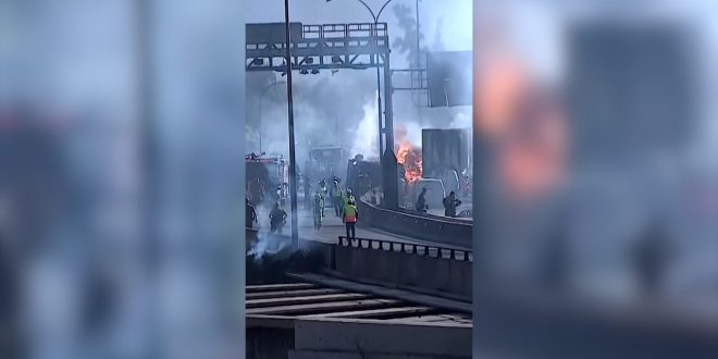 فقد سائق شاحنة نقل غاز في سانتياغو، تشيلي، السيطرة عليها واصطدمت بالحواجز على جانب الطريق السريع.أدى الانفجار الذي رصدته كاميرا إلى إلحاق أضرار بعدد من السيارات ومقتل أربعة أشخاص على الأقل.
