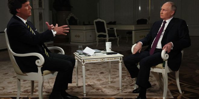 تداول نشطاء على مواقع التواصل الاجتماعي مقاطع وملخصات من مقابلة الرئيس الروسي، فلاديمير بوتين مع المذيع الأمريكي، تاكر كارلسون في العاصمة الروسية، موسكو وسط تفاعل واسع على بعض التصريحات التي أدلى بها.