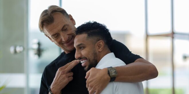 وشُوهد هيرفي رينارد، المدير الفني لـ"الأخضر"، وهو يصافح ويعانق الدوسري، قبل أن يتحدث معه، لتخطف اللفتة الأنظار.
