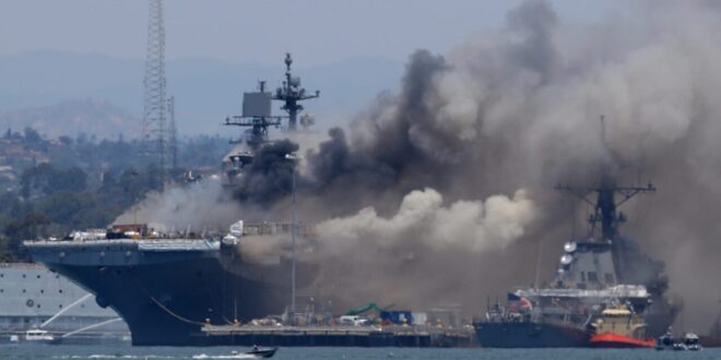 وارتبط الفيديو بسفينة USS Bonhomme Richard الراسية في قاعدة سان دييغو البحرية، التي ظلت مشتعلة لمدة أربعة أيام. وكانت تخضع في ذلك الوقت لعملية صيانة دورية بدأت في عام 2018، حسبما غطت شبكة الحادثة.