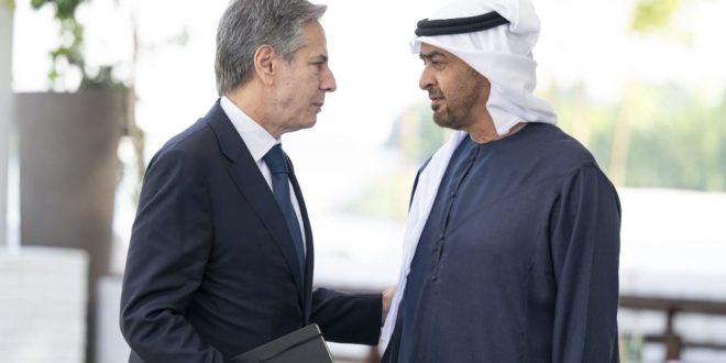 وذكرت وكالة الأنباء الإماراتية “وام” أن “رئيس الدولة، الشيخ محمد بن زايد استقبل وزير الخارجية الأمريكي وبحث معه علاقات التعاون والعمل المشترك بين البلدين والقضايا الإقليمية والدولية محل الاهتمام المشترك، والتطورات في منطقة الشرق الأوسط، خاصة المستجدات في الأراضي الفلسطينية المحتلة، والتداعيات الخطيرة للأزمة في قطاع غ-ز-ة على السلام والاستقرار والأمن في المنطقة”.