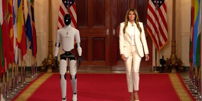 أحضرت السيدة الأمريكية الأولى، ميلانيا ترامب، روبوتًا بشريًا يعمل بالذكاء الاصطناعي إلى اجتماع طاولة مستديرة في البيت الأبيض، في اليوم الثاني من القمة العالمية الأولى لتحالف "معًا من أجل مستقبل أفضل".