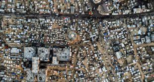 وجه رئيس الوزراء الإسرائيلي، بنيامين نتنياهو، الجيش بالتخطيط لإجلاء أكثر من 1.3 مليون شخص، بحسب تقديرات الأمم المتحدة، في مدينة رفح جنوب قطاع غ-زة. وقال مكتبه في بيان له إنه من غير الممكن القضاء على ح-ما-س مع بقاء “أربع كتائب ل ح-ما-س في رفح”. يُظهر هذا المنظر الجوي مخيمات النازحين …
